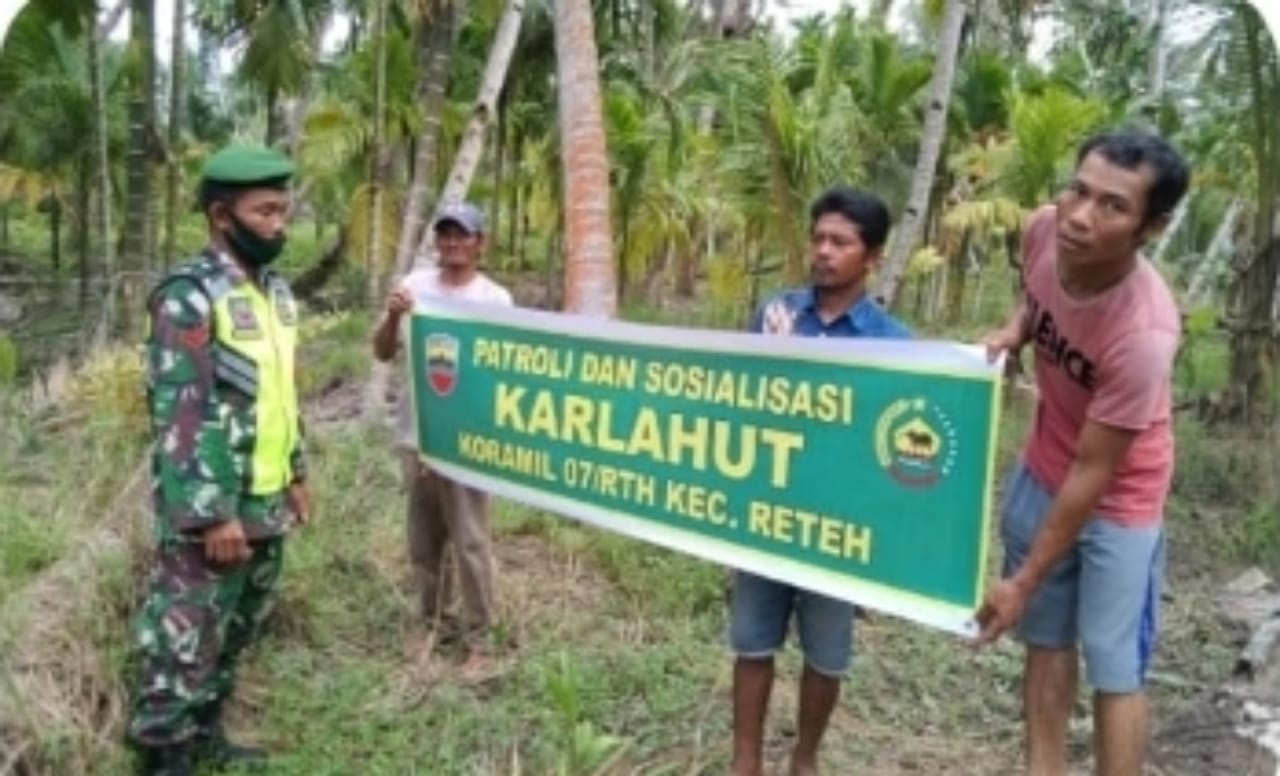 tak lupa memberikan himbauan kepada Masyarakat agar tidak melakukan pembakaran saat membuka Lahan/Perkebunan guna mencegah terjadinya Karlahut di wilayah binaan Koramil 07/Reteh, ujar Koptu R.H Tambunan