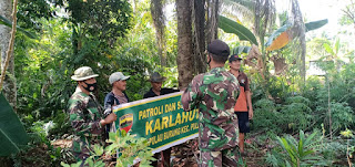 Personil Koramil 11/Pulau Burung dipimpin oleh Serda Ratno melaksakan kegiatan patroli bersama dan sosialisasi karhutla di Desa Pulau Burung Kec Pulau Burung Kab Inhil Senin (03/05/2021)