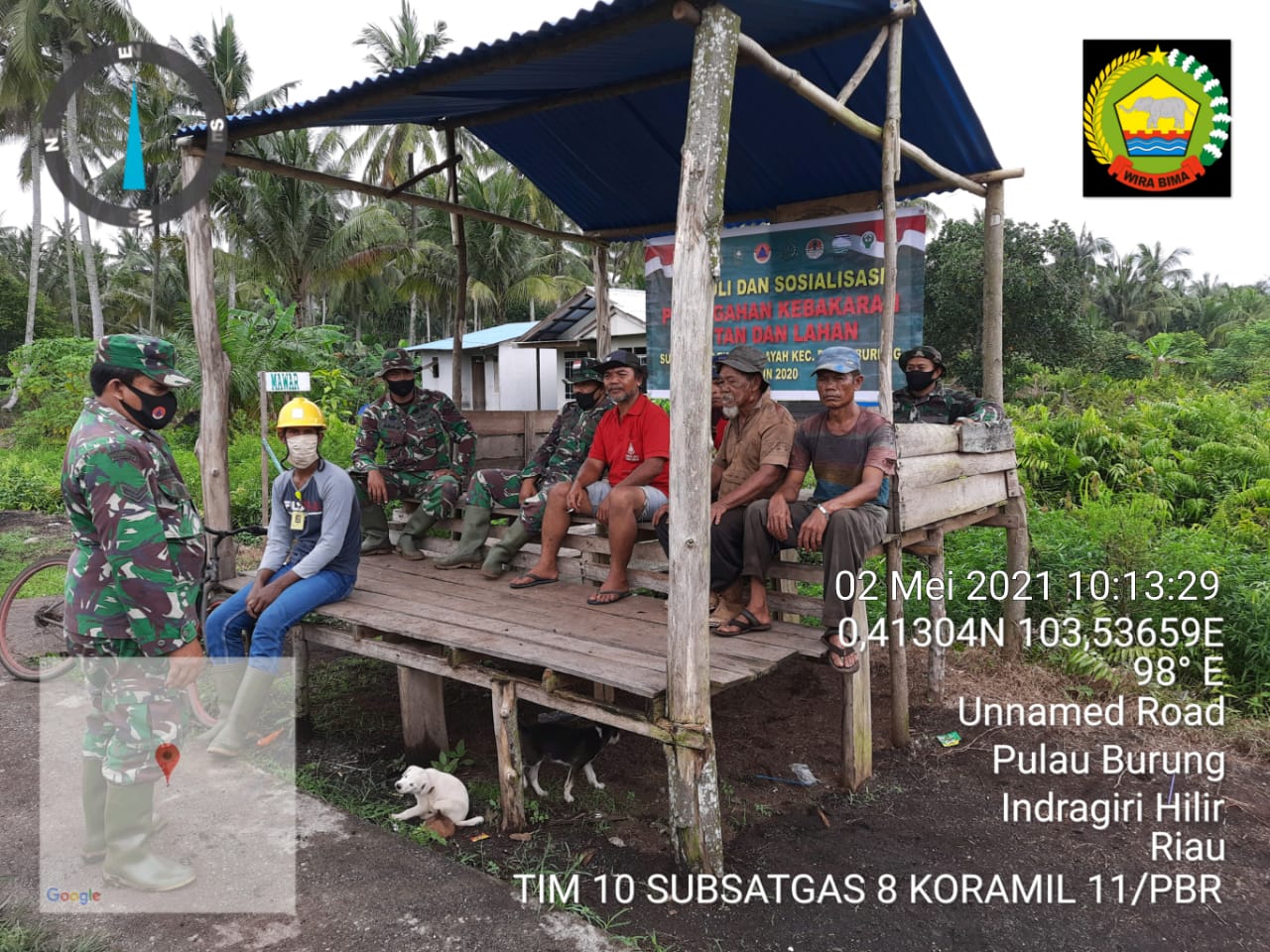 SERIBUPARITNEWS.COM, PULAUBURUNG - Meskipun beberapa Minggu ini Desa Pulau Burung dan sekitarnya diguyur hujan, tetapi  Anggota Koramil 11/Pulau Burung  Sertu Yanuarsyah TetapMelaksanakan  patroli dan sosialisasi karhutla  Minggu (02/05/2021)