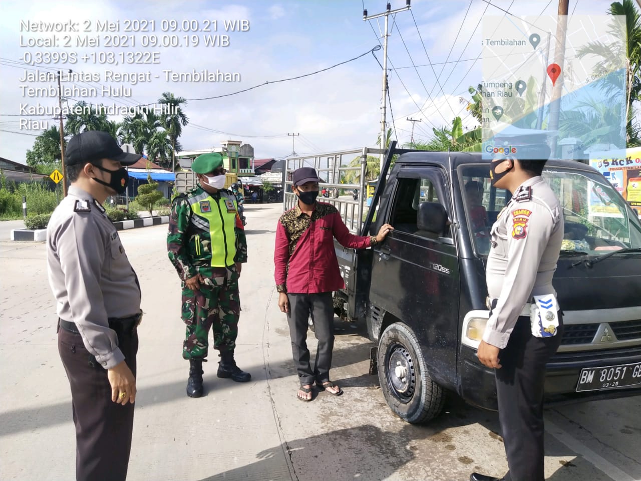 SERIBUPARITNEWS.COM,TEMBILAHANHULU - Kodim 0314/Inhil melalui Babinsa Koramil 01 Tembilahan Sertu  Khairunnas bersama beberapa personil kodim 0314/Inhil melaksanakan Operasi Yustisi dalam rangka penegakkan disiplin protokol kesehatan di Jalan Simpang Tiga Parit Enam  Kecamatan Tembilahan Hulu Minggu   (02/05/2021)