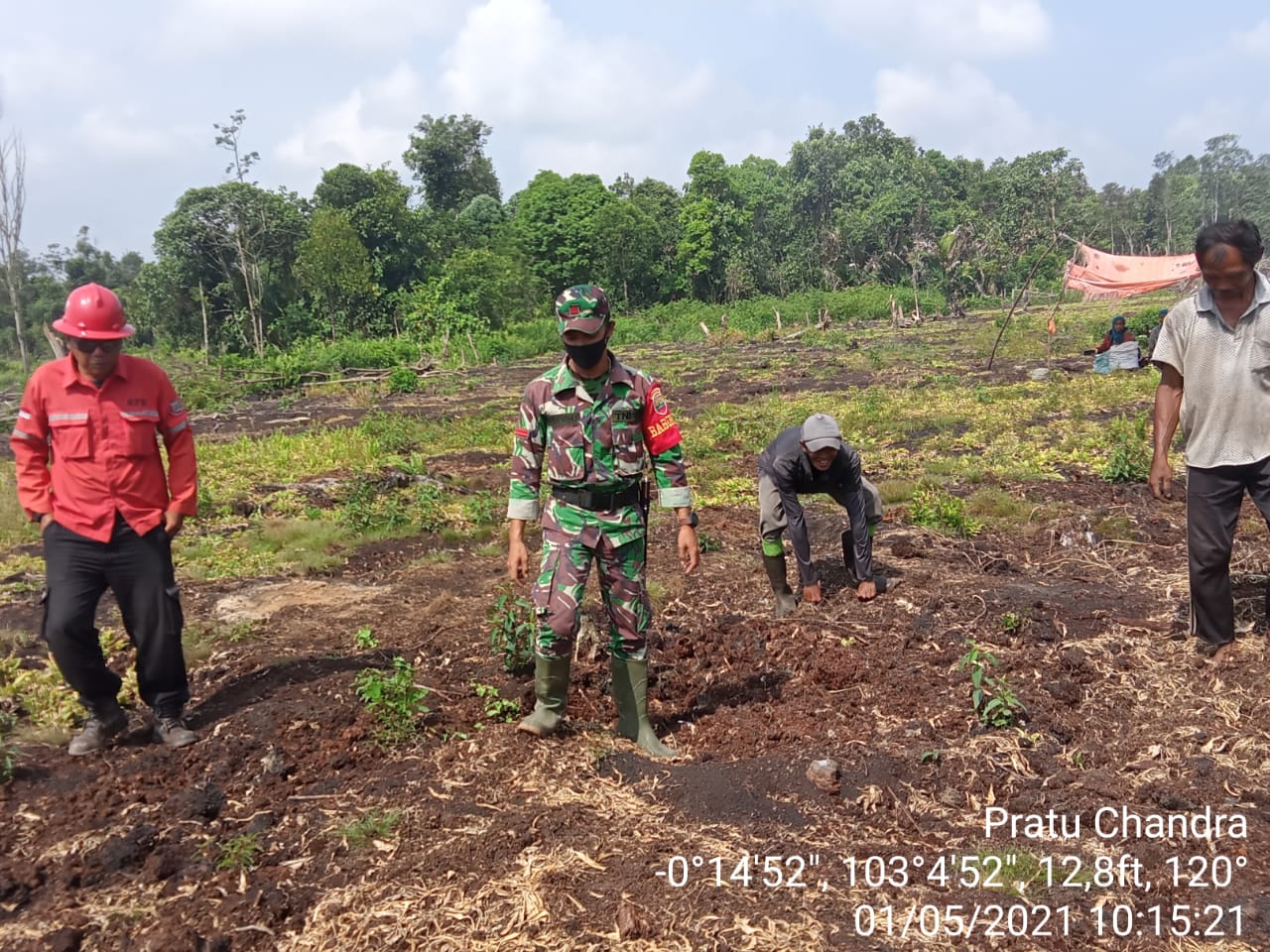 Menjelang tengah hari Babinsa Koramil 05/Gas Kodim 0314/Inhil Pratu Candra Winata melaksanakan Patroli Karhutlah Agresif dan terfokus di Areal PT.BDL Desa Sungai Rawa Kecamatan Batang Tuaka Sabtu (01/05/2021)