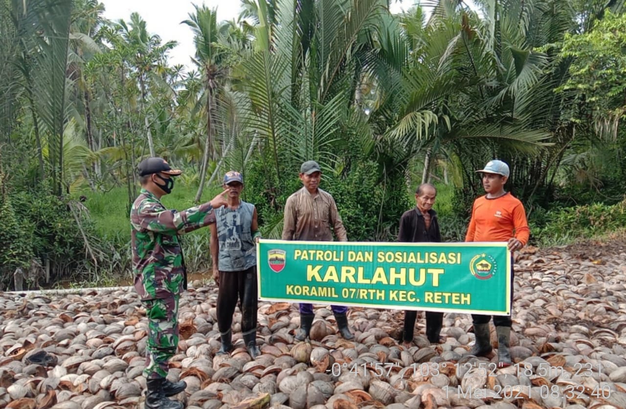 Babinsa Koramil 07 / Reteh Aktif Melaksanakan Patroli dan Sosialisasi Pencegahan Karhutla