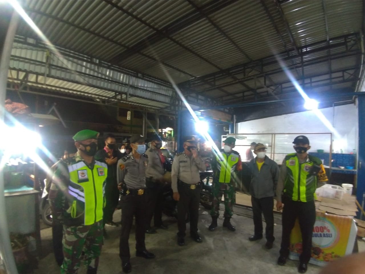 Anggota Personil Koramil 01/Tembilahan Kodim 0314/Inhil Sertu Simbolon dan Kopda Komarudin melakukan penyekatan mobilitas Masyarakat di wilayah Tembilahan hulu Kab.Inhil malam tadi Kamis (29/04/2021)