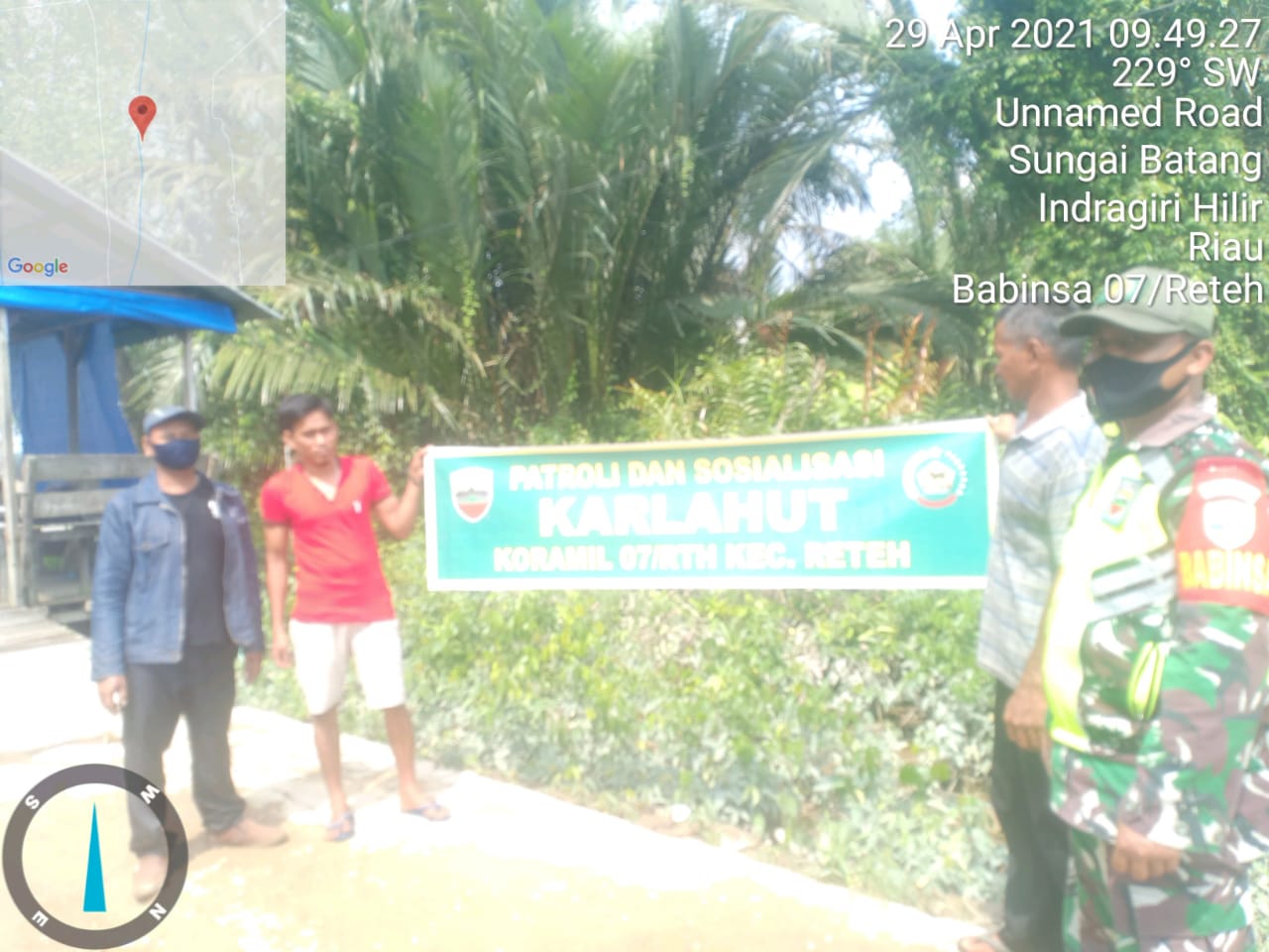 SERIBUPARITNEWS.COM,Sebrang Pulau Kijang," - Sebagai upaya pencegahan Kebakaran lahan dan Hutan (Karlahut), Babinsa Koramil 07/Reteh Kodim 0314/Inhil melaksanakan Patroli di Desa Sebrang Pulau Kijang Kecamatan Reteh, Kamis (29/04/2021)