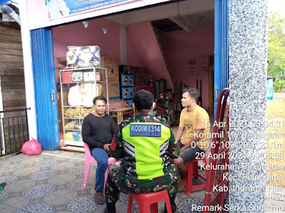 SERIBUPARITNEWS.COM, Babinsa Koramil 10/Pelangiran Kodim 0314/Inhil  Serka Sugianto melaksanakan kegiatan himbauan penegakan protokol kesehatan Kamis (29/04/2021)