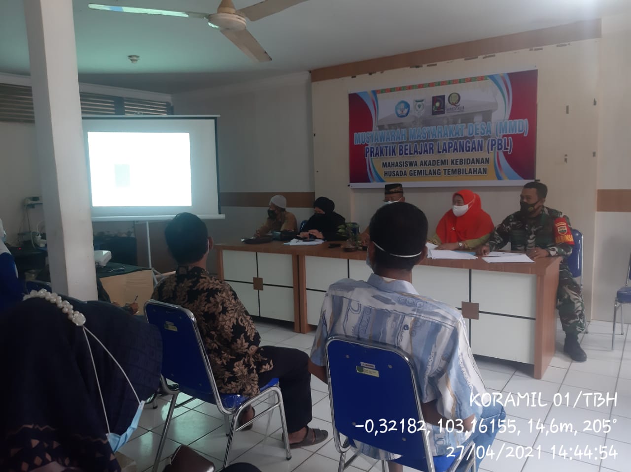 Sosialisasi yang dilaksanakan berupa Musyawarah masyarakat desa praktek belajar lapangan mahasiswa akademi kebidanan husada
