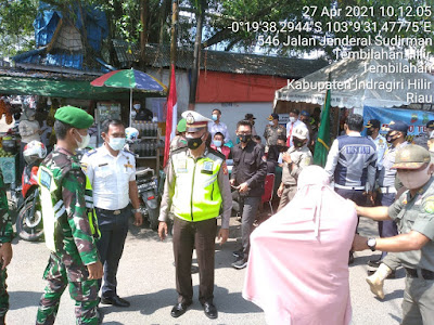 SERIBUPARITNEWS.COM, TEMBILAHAN - Serda Adri Candra Babinsa Koramil 01/Tembilahan Kodim 0314/Inhil bersama Tim Gugus  Melaksanakan kegiatan Penegakan Disiplin Protkes dan penyekatan mobilitas Masyarakat di wilayah Kota Tembilahan  Kab. Inhil Selasa (27/04/2021)