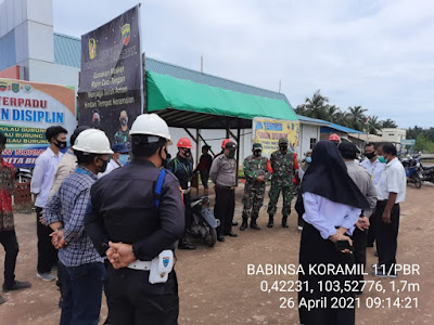 SERIBUPARITNEWS.COM, PULAUBURUNG - Babinsa Koramil 11/Pulau Burung Kodim 0314/Inhil Sertu Yanuarsyah Melaksanakan Komsos bersama Tim Gugus Tugas Covid 19 Kecamatan Senin (26/04/2021)