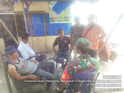 SERIBUPARITNEWS.COM, PELANGIRAN - Babinsa Koramil 10/Pelangiran Kodim 0314/Inhil Kopda Dodimen melaksanakan kegiatan komunikasi Sosial bersama RT dan RW Senin (26/04/2021)