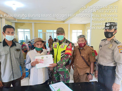 SERIBUPARITNEWS.COM, PULAUBURUNG - Guna membantu masyarakat Desa Pulau Burung Kodim 0314/Inhil yang terdampak Covid -19 dan kurang mampu, Babinsa Koramil 11/Pulau Burung Serda Arif Darmawan melaksanakan Pendampingan Penyaluran Bansos Senin (26/04/2021)