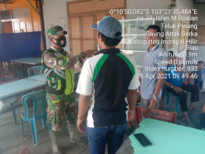 SERIBUPARITNEWS.COM, GAUNG ANAK SERKA - Babinsa Koramil 05/Gas Kodim 0314/Inhil Kopda Umar Nasution tetap menjalankan tugasnya dalam penegakkan disiplin biarpun dihari Minggu dan menjalani puasa (25/04/2021)
