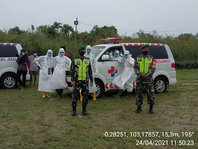 SERIBUPARITNEWS.COM, TEMBILAHAN - Pelda Indra Mukri Babinsa Koramil 01/Tembilahan bersama tim  telah melaksanakan pengamanan  pemakaman pasien Covid-19 an.EK  di Pemakaman Khusus Covid 19 Parit 19 Kelurahan Sungai Beringin Kecamatan  Tembilahan Kab Inhil Sabtu (24/04/2021)