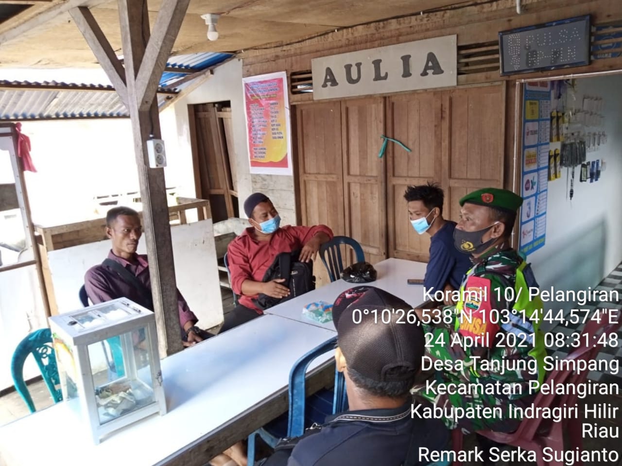 SERIBUPARITNEWS.COM, PELANGIRAN - Melaksanakan tugas sembari melaksanakan silaturahmi mengisi bulan ramadhan yang dilakukan Babinsa Koramil 10/Pelangiran Serka Sugianto di Desa Tanjung Simpang Sabtu (24/04/2021)