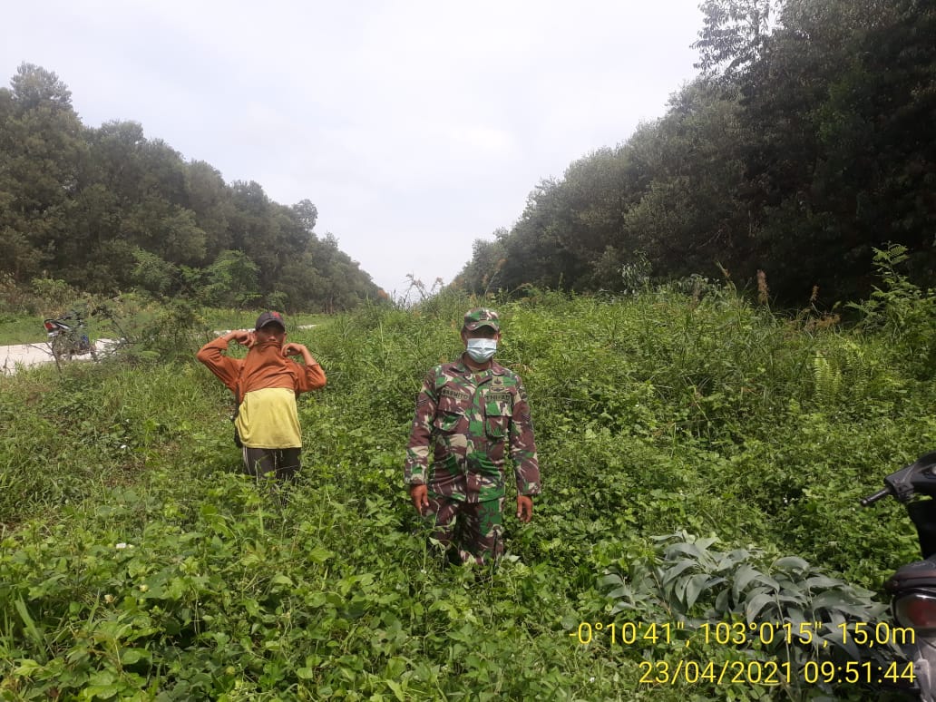 SERIBUPARITNEWS.COM, GAUNG ANAK SERKA - Di Tengah sibuknya aktifitasnya dalam pembinaan teritorial , Serka Sasmito menyempatkan diri melaksanakan Patroli Karlahut Bersama Warga di areal PT.BDL Desa Gembira Kecamatan Gaung Jumat (23/04/2021)