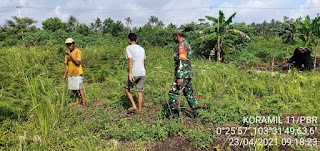 Babinsa bersama warga meninjau lahan pertanian warga yang sering terjadi karhutlah beberapa tahun kebelakang