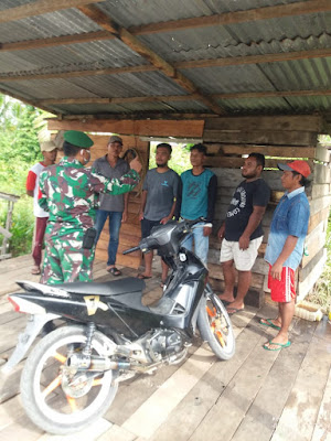 Babinsa himbau agar para pemuda memakai masker dan menjaga jarak untuk memutus mata rantai  penularan virus covid 19