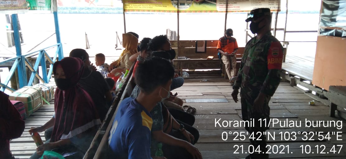 SERIBUPARITNEWS.COM, PULAUBURUNG - Babinsa Koramil 11/Pulau Burung Kodim 0314/Inhil  Serda Ratno melaksanakan kegiatan Komsos bersama warga di Pelabuhan Penumpang Desa Pulau Burung Kecamatan Pulau Burung Rabu (21/04/2021)
