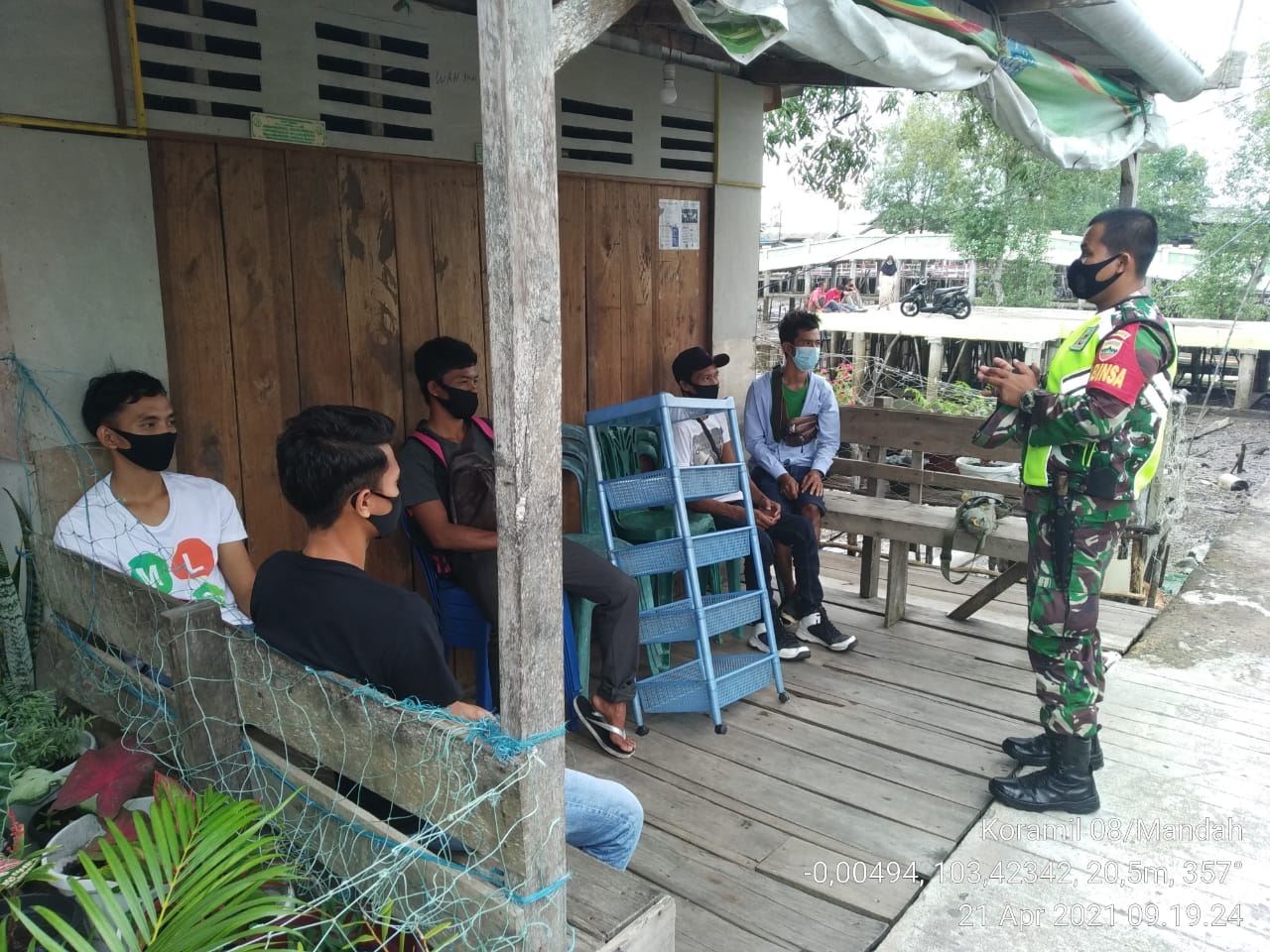 SERIBUPARITNEWS.COM, MANDAH - Serda Erik A. Sibarani Babinsa Koramil 08/Mandah melaksanakan Penegakan Disiplin Protokol Kesehatan Covid bersama warga  yang berkumpul Rabu (21/04/2021)