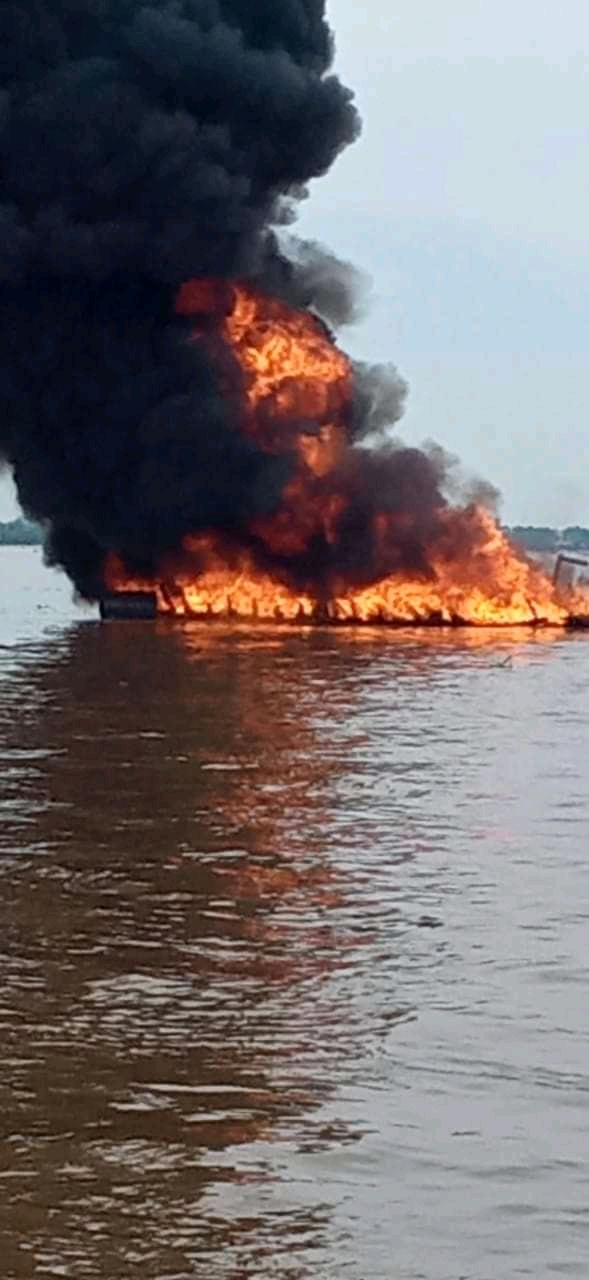 Sebuah Kapal Motor Terbakar di Tengah Sungai Indragiri