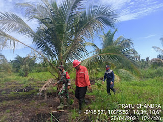 Menjelang tengah hari Babinsa Koramil 05/Gas Kodim 0314/Inhil Pratu Candra Winata   melaksanakan Patroli Karhutlah terfokus di Areal PT.BDL Desa Sungai Rawa Kecamatan Batang Tuaka  Selasa (20/04/2021)