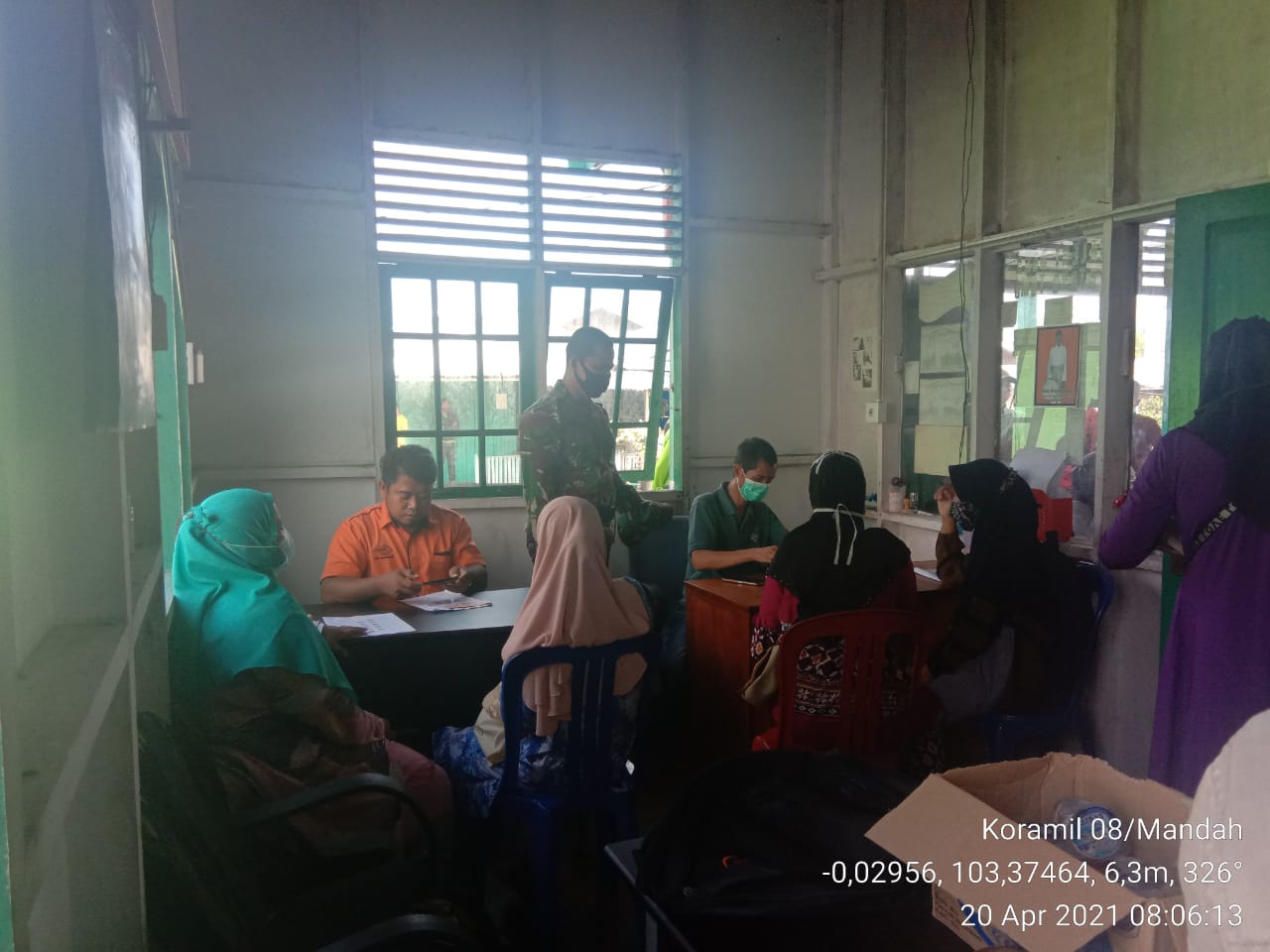 SERIBUPARITNEWS.COM,MANDAH - Serda Erik A. Sibarani Babinsa Koramil 08/Mandah Kodim 0314/Inhil Melaksanakan Komunikasi Sosial bersama Pegawai Pos tentang pembagian Bantuan Sosial Tunai Selasa (20/04/2021)