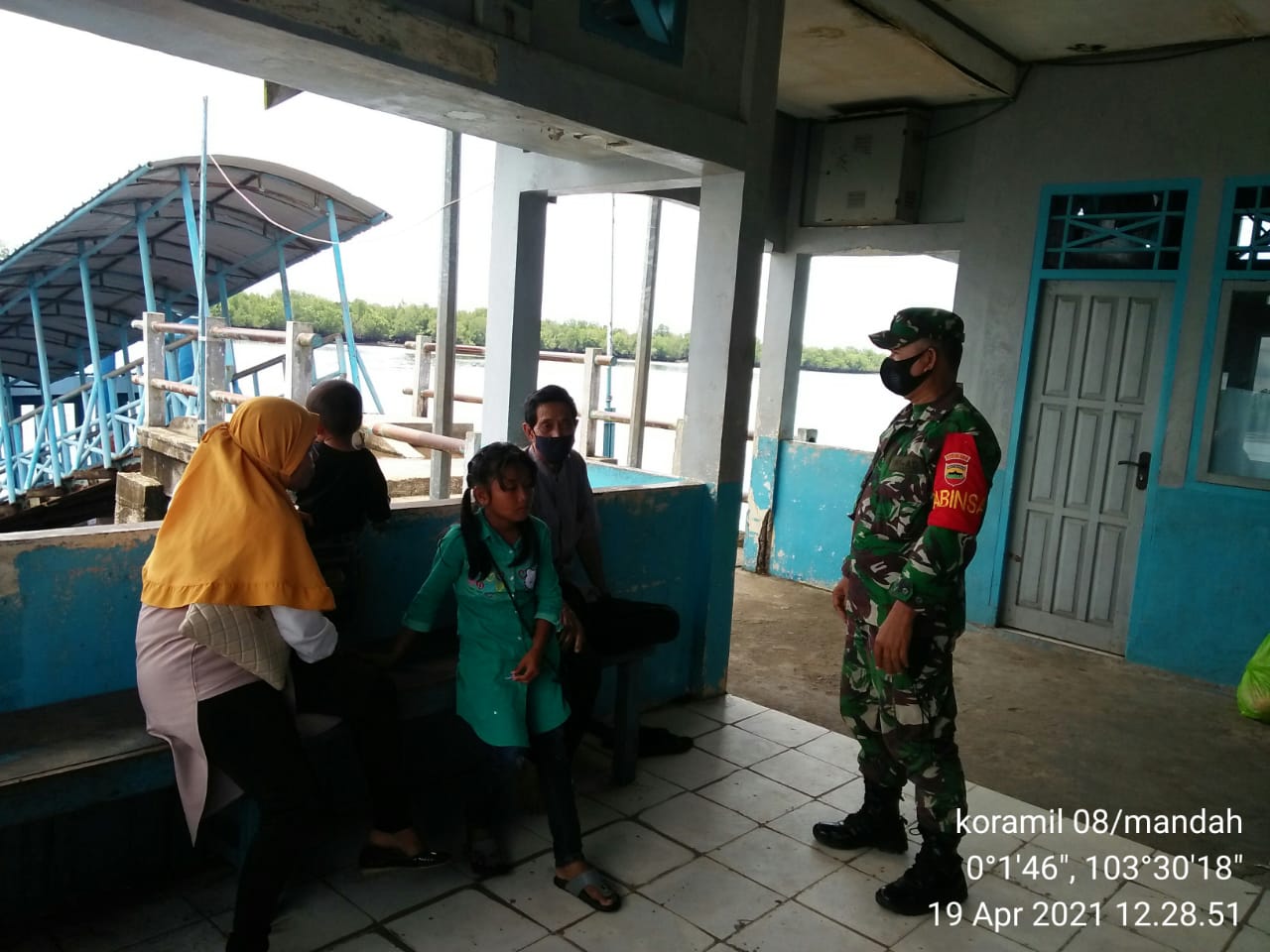 SERIBUPARITNEWS.COM, MANDAH - Serma M. Darmansyah Babinsa Koramil 08/Mandah Kodim 0314/Inhil Melaksanakan Komunikasi Sosial bersama warga di Pelabuhan Sembuang Mandah Kecamatan Mandah Senin (19/04/2021)