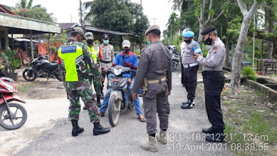 SERIBUPARITNEWS.COM, Pulau Kijang,"– Babinsa Koramil 07/Reteh Serma Noviadi Bersama Serda Surya Wibowo melaksanakan Penegakan disiplin Protokol Kesehatan bersama team Satgas Covid-19 Kecamatan Reteh, yang dilakasanakan pada pagi hari oleh, Personil Koramil 07/Reteh 2 Orang, Personil Polsek Reteh 4 Orang, Sat Pol PP 1 Orang dan Relawan 1 Orang, Senin (19/04/2021)