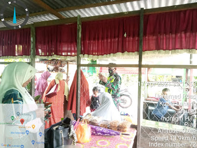 SERIBUPARITNEWS.COM, GAUNG ANAK SERKA - Babinsa koramil 05/Gas Kodim 0314/Inhil  Serma Tota melaksanakan penegakan disiplin  protokol kesehatan di kelurahan kuala lahang Sabtu (17/04/2021)