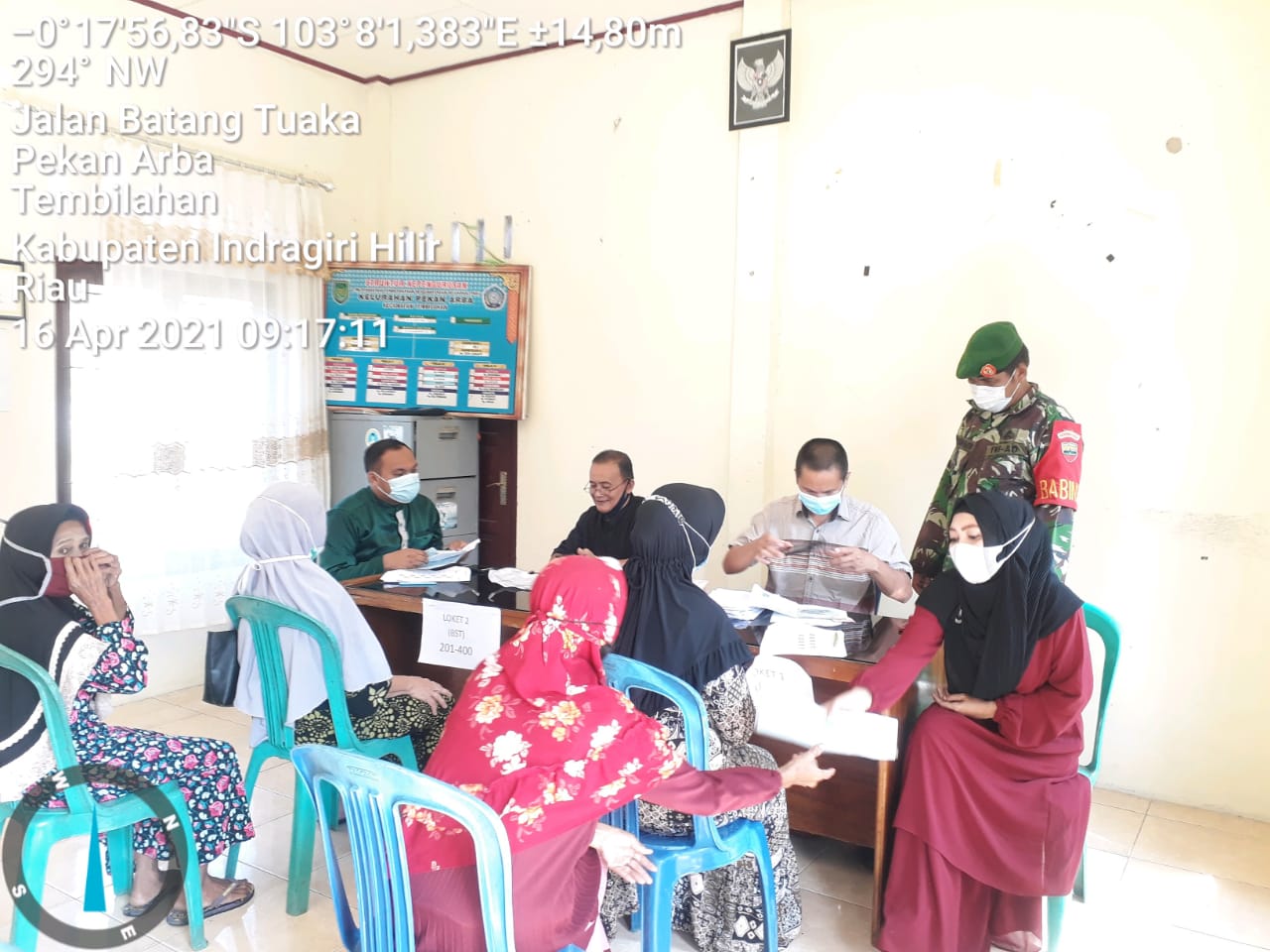 SERIBUPARITNEWS.COM, TEMBILAHAN - Sertu Surung Simbolon Babinsa Koramil 01/Tembilahan Melaksanakan Pendampingan Penyaluran BST Kemensos kepada warga kurang mampu yang terdampak Covid 19, di kantor kelurahan.Pekanarna Jalan Pekanarba kelurahan Pekanarba Kecamatan Tembilahan, Kab.Inhil Jumat (16/04/2021)