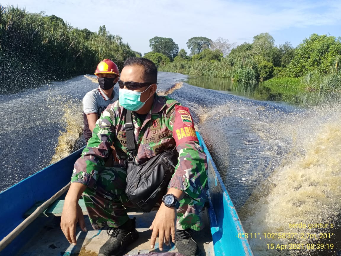 SERIBUPARITNEWS.COM,GAUNG - Serda Guntur Sempurna Babinsa Koramil 05/Gas Kodim 0314/Inhil Melaksanakan Patroli Karhutla di wilayah perairan Kecamatan Gaung Kamis (15/04/2021)