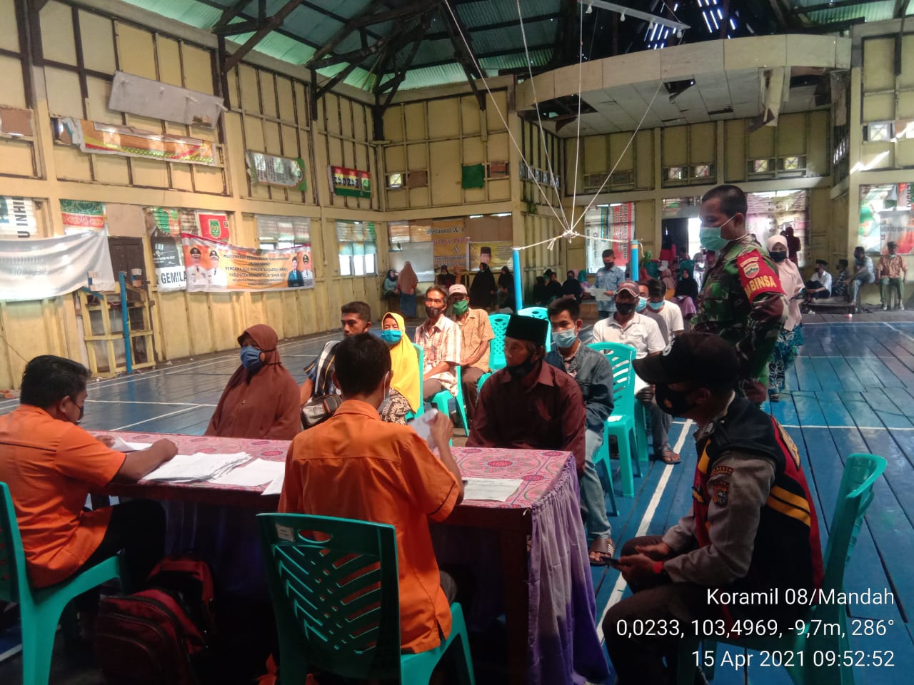 SERIBUPARITNEWS.COM, MANDAH - Serda Erik A. Sibarani Babinsa Koramil 08/Mandah Kodim 0314/Inhil bersama Polri Melaksanakan pendampingan pegawai Pos dan Giro saat penyaluran BST tahap 3 dan 4 di Gedung Serbaguna Kelurahan Khairiah Mandah Kecamatan Mandah Kab. Inhil Kamis (15/04/2021)