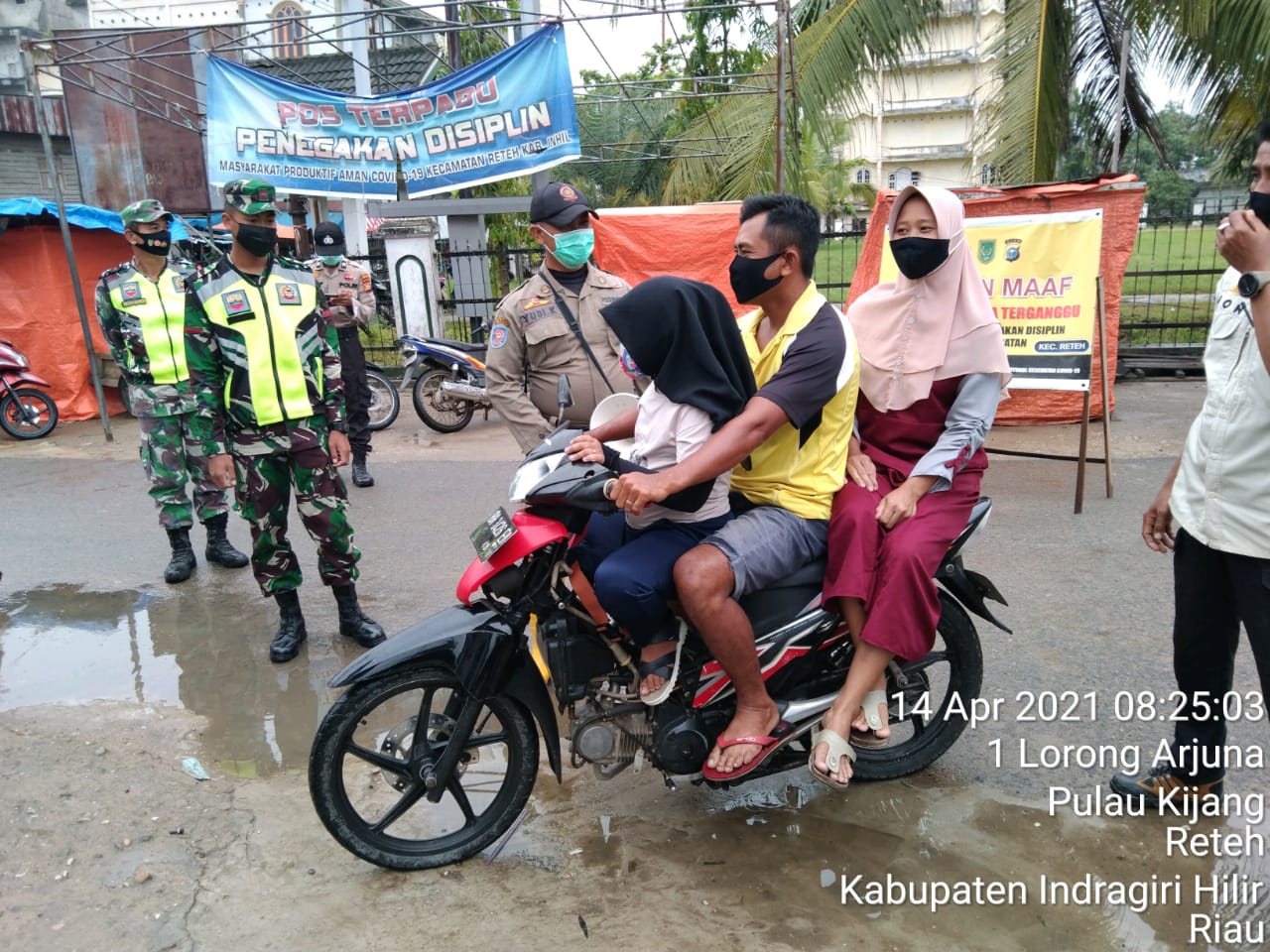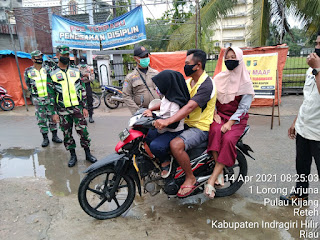 SERIBUPARITNEWS.COM,Pulau Kijang,"-Babinsa Koramil 07/Reteh bersama Team Satgas gabungan yang terdiri dar Anggota Koramil 07/Reteh, Anggota Polsek Reteh dan Sat pol PP melaksanakan himbauan kepada warga agar selalu tetap mematuhi Protokol Kesehatan dengan tetap mentaati 4 M, menggunakan masker, jaga jarak, rajin cuci tangan dan menghindari kerumunan. Hal ini merupakan langkah awal untuk memutus dan mencegah penularan Covid-19.
