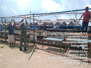 SERIBUPARITNEWS.COM,MANDAH - Praka Hendri Babinsa Koramil 08/Mandah Kodim 0314/Inhil Melaksanakan komunikasi Sosial bersama warga di Pasar Kelurahan Khairiah Mandah Kecamatan Mandah Selasa (13/04/2021)