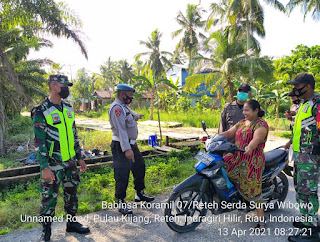SERIBUPARITNEWS.COM,Pulau Kijang,"-Belum berakhirnya masa Pandemi Babinsa jajaran Koramil 07/Reteh Kodim 0314/Inhil terus gencar melaksanakan himbauan kepada masyarakat untuk mematuhi Protokol Kesehatan.Selasa 13/04/ 2021