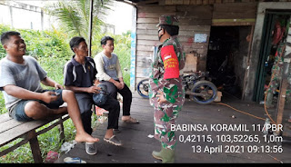 SERIBUPARITNEWS.COM, Babinsa Koramil 11/Pulau Burung Kodim 0314/Inhil Sertu Yanuarsyah Melaksanakan Komsos bersama di Desa Pulau Burung Selasa (13/04/2021)