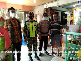 SERIBUPARITNEWS.COM, PULAUBURUNG - Anggota Koramil 11/Pulau Burung Kodim 0314/Inhil  Serda Ratno bersama Tim Gugus Tugas Covid-19 Kecamatan (Kapolsek,Sekcam  dan UPT  Puskesmas) melaksakan Kegiatan Penegakkan Disiplin  Protokol Kesehatan Covid-19 di Desa Pulau Burung Kecamatan Pulau Burung Senin (12/04/2021)