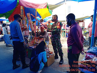 SERIBUPARITNEWS.COM, TEMBILAHANHULU - Jelang Ramadhan Babinsa Pulau Palas Serda Ali Sabri bersama Aparatur desa dan Bhabinkamtibmas Melaksanakan Patroli Razia Pejual Mercon dan Petasan di Pasar Desa Pulau Palas Kecamatan Tembilahan Hulu Minggu (11/04/2021)