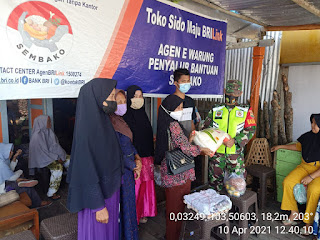 SERIBUPARITNEWS.COM, MANDAH - Babinsa Igal Koramil 08/Mandah Kodim 0314/Inhil Serka H.Situmorang melaksanakan pendampingan pembagian BPNT ( Bantuan Pangan Nontunai ) 2 Bulan Maret dan April Pasar Sembuang Kecamatan Mandah Sabtu  (10/04/2021)