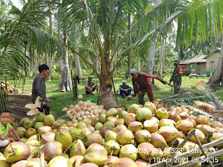 Monitoring yang dilaksanakan babinsa tentang hasil kelapa panen di Desa  Pandan Sari Kelurahan Khairiah Mandah