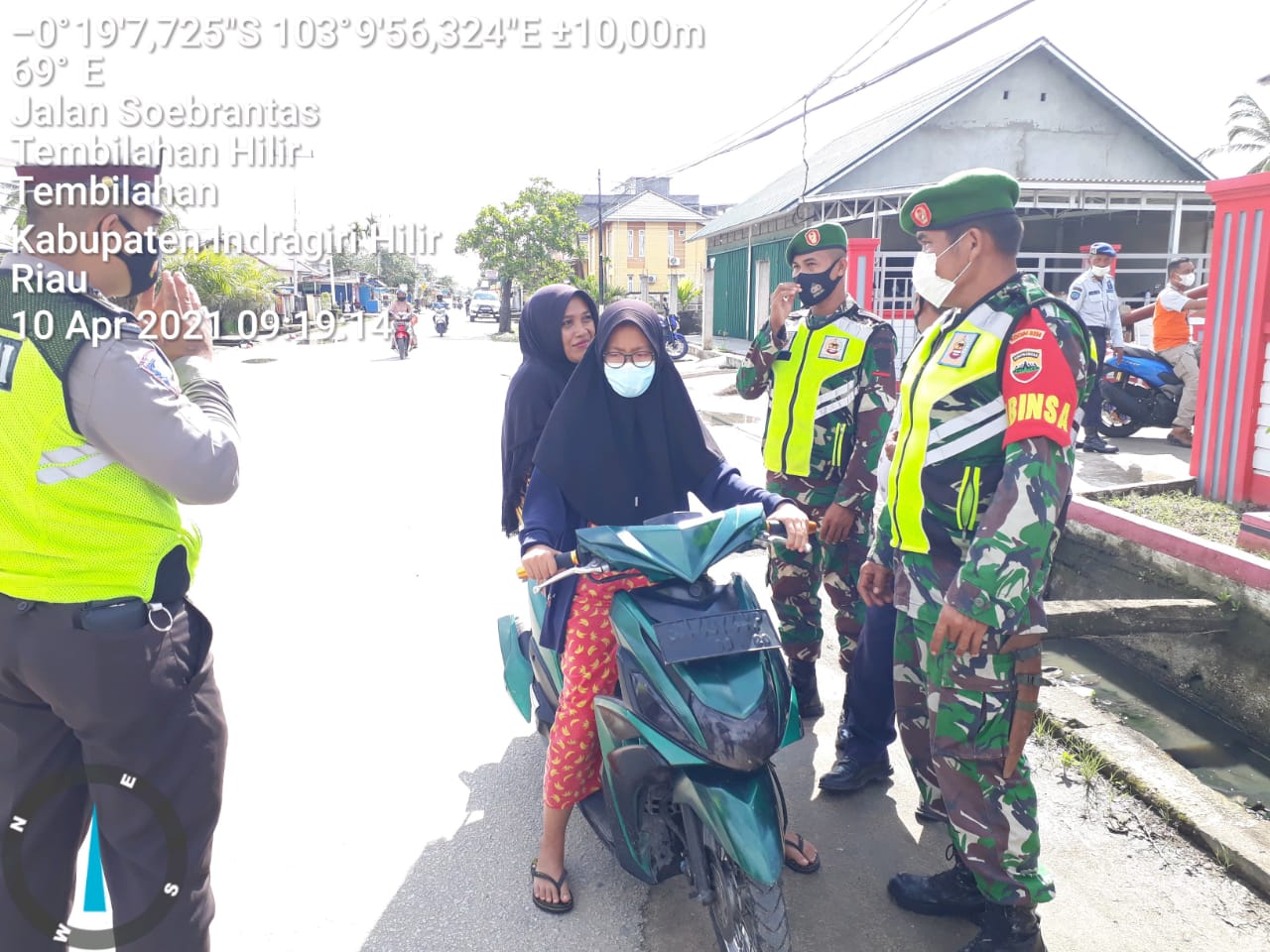 SERIBUPARITNEWS.COM, TEMBILAHANHULU -  Sertu Surung Simbolon Babinsa Koramil 01/Tembilahan Kodim 0314/Inhil Melaksanakan Gakplin di Simpang Tiga Depan Lapas disiplin terpadu protokol kesehatan  di  simpang 3 depan lapas Tembilahan   Sabtu (10/04/2021)