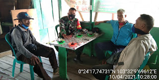 SERIBUPARITNEWS.COM, PULAUBURUNG - Babinsa Koramil 11/Pulau Burung Kodim 0314/Inhil Serda Siswanto Melaksanakan Komunikasi Sosial  Bersama Warga Binaan di Teluk Nibung Kecamatan Pulau Burung Sabtu (10/04/2021)