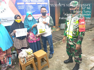 SERIBUPARITNEWS.COM, MANDAH - Serda Tulus Lumban Gaol Babinsa Koramil 08/Mandah Kodim 0314/Inhil Melaksanakan komsos bersama Babinkamtibmas dan warga yang menerima bantuan BPNT di Desa Tokolan Desa Batang Tumu Kecamatan Mandah Jumat (09/04/2021)
