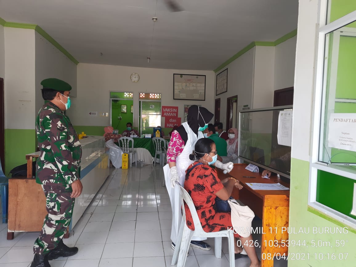 SERIBUPARITNEWS.COM, PULAUBURUNG -  Sertu Yanuarsyah Babinsa Koramil 11/Pulau Burung Kodim 0314/Inhil Melaksanakan Pendampingan suntik Vaksin Sinovak  Dosis II Bagi Pelayan Publik di  Puskesmas Pulau Burung  Kab Inhil.Kamis (08/04/2021)