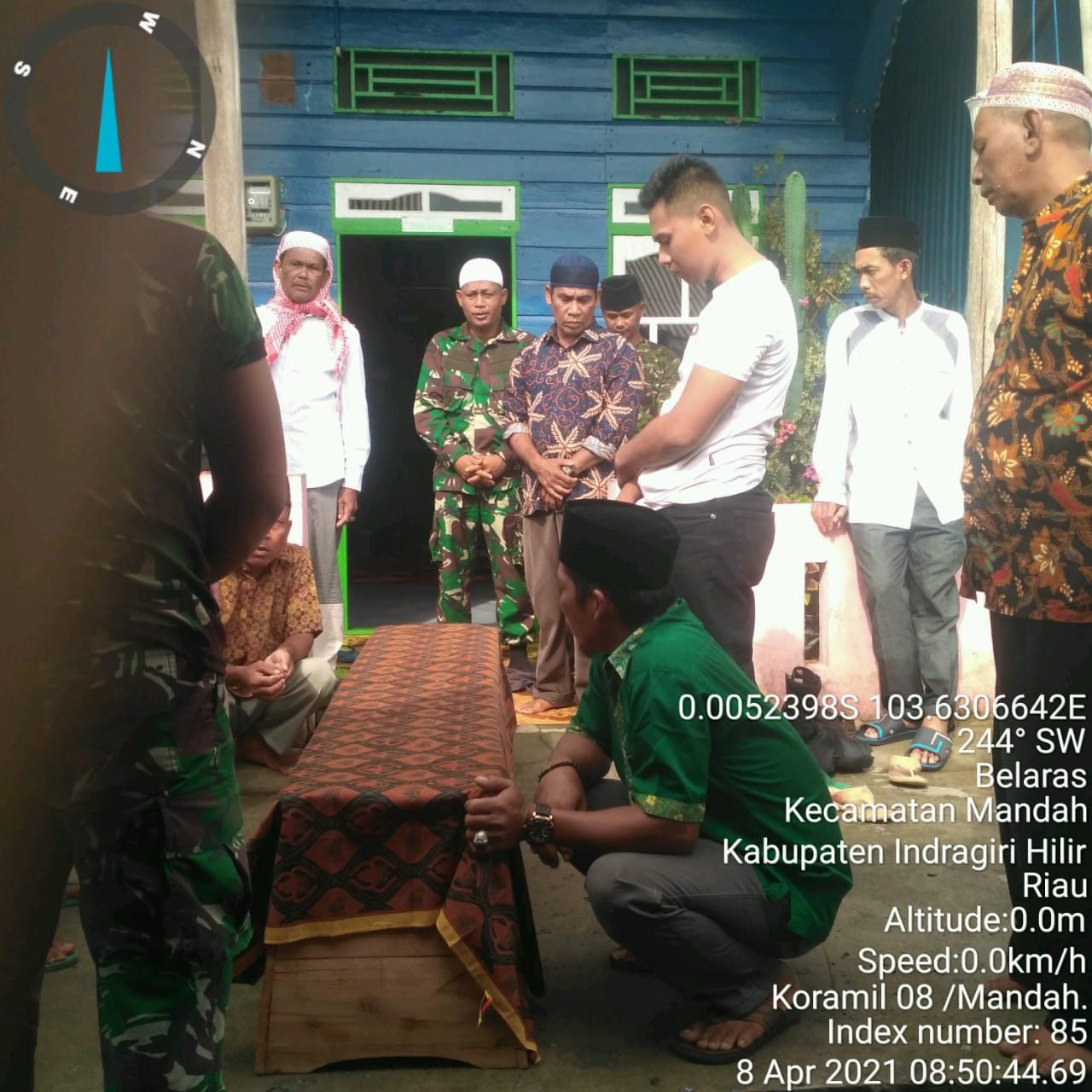 Takjiah berupa Melayat orang meninggal dunia adik kandung dari Praka Hendri personil Koramil 08/Mandaj di Desa Belaras Kecamatan Mandah