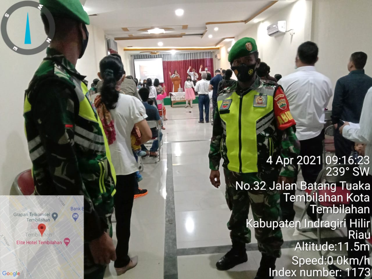 SERIBUPARITNEWS.COM,TEMBILAHAN -  Pelda Jaharzam Babinsa Koramil 01/Tembilahan kodim 0314/Inhil melaksanakan Pengamanan Gereja (GPDI)dalam rangka kegiatan perayaan hari paskah di gedung Aula Grand hotel Jalan Abdul Manaf Kelurahan Tembilahan Kota, Kecamatan Tembilahan Kab. Inhil Minggu (04/04/2021)