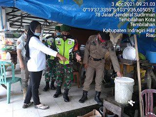 Dibantu Satpol PP Inhil,Personil Kodim,Dishub dan Polres Inhil menyisir setiap pemilik toko dan pelaku usaha yang berada di Jalan Jenderal Sudirman dalam mematuhi protokol kesehatan salah satunya fasilitas pencuci tangan