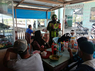 Babinsa melihat kerumunan di sebuah warung dan pengunjung tanpa memakai masker membuatnya datang dan mengingatkan pengunjung tersebut