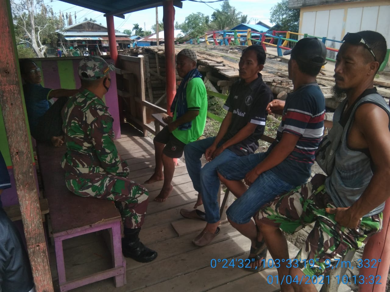 SERIBUPARITNEWS.COM, PULAUBURUNG - Babinsa Koramil 11/Pulau Burung Kodim 0314/Inhil Serda Siswanto melaksanakan kegiatan Komsos dengan warga di Dusun Sinar Baru Desa Pulau Burung Kecamatan Pulau Burung Kab Inhil Kamis (01/04/2021)