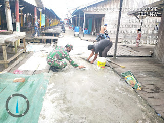Serda Tulus Lumban Gaol Babinsa Koramil 08/Mandah Kodim 0314/Inhil Tulus membantu Infrastruktur Warganya Yang Rusak
