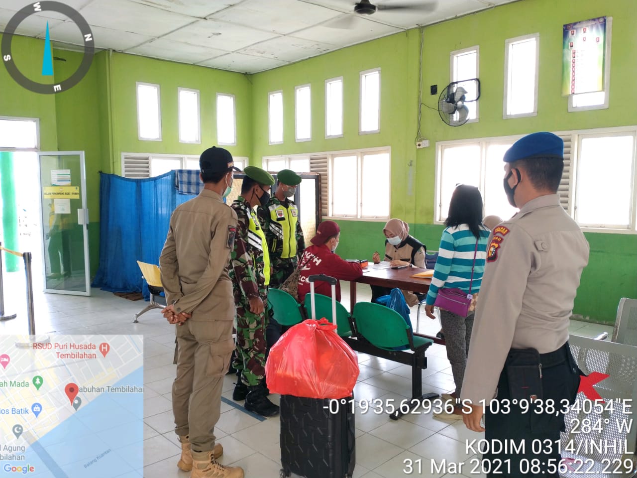 SERIBUPARITNEWS.COM,TEMBILAHAN -  Sertu Masri Babinsa Koramil 01/Tembilahan Melaksanakan pengecekan Rapit test bagi penumpang yang akan diberangkatkan melalui Kapal Bintang Rizki dari Tembilahan Pelabuhan Pelindo  menuju Pelabuhan Tanjung Balai Rabu (31/03/2021)